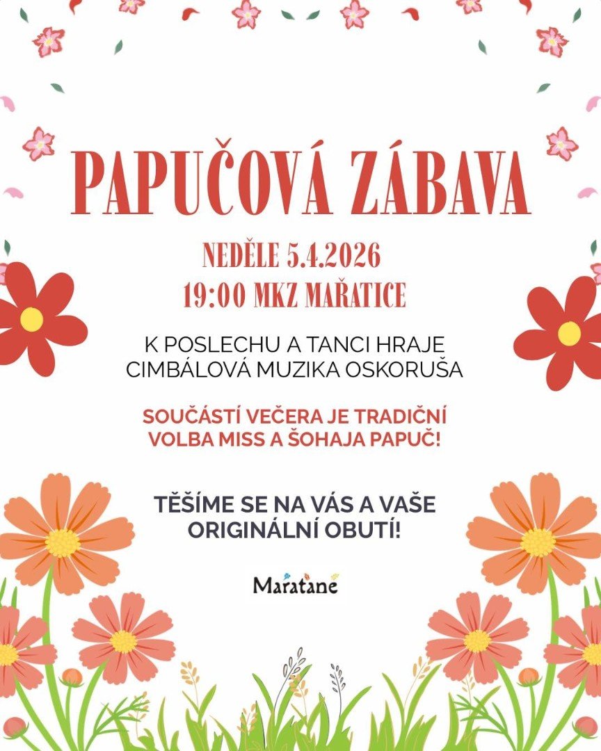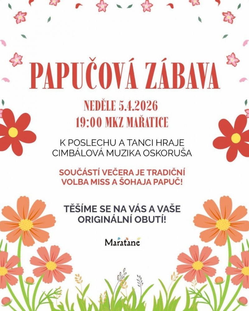 Mařaťané vás srdečně zvou na tradiční besedu u cimbálu, která se koná v neděli 5. dubna 2026 od 19:00, před velikonočním pondělím.